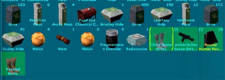 翌日、気を取り直してログインしますと何もなかったかのようにChitinのBootを履いていました。 実際の効果もあるようですし、弱いCreatureで気絶もしなくなりました。 |