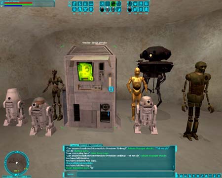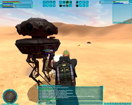 今回のターゲットはこのProbotです。 狩りに一緒に連れて行って、サポートしてくれる攻撃用Droidです。 映画では帝国軍の偵察用DroidってことでEpisodeIVからも登場してる有名な形のDroidです。 Patchが当たる以前は強かったそうですが、Nelf(弱体化)されてからかなり使えなくなったとは聴いていたのですが、このDroidは是非欲しいアイテムだったので無理矢理購入しました。 嬉しさのあまり速攻で、いつものBestineに戻りました。 しか〜し、、移動時の下着親父の祟りなのか、、、購入したDroidが何処にも見あたりません。 そう言えば、購入直後にtameしてInventoryからDataPadに移すとか、書き込みあったなあ(T_T) |