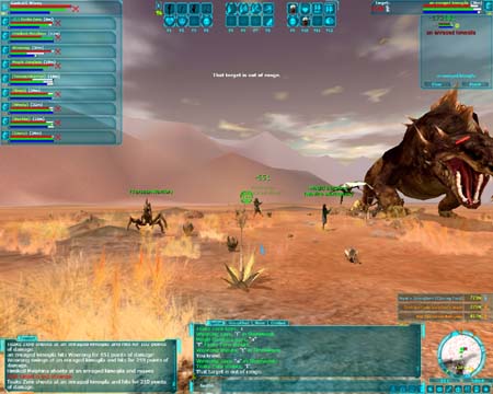 これです。って、言っても判りづらいですが、この赤の部分がPCの背の高さですよ。 実は、Tatooineにも怪獣が居るらしいです。 こっちのはレアな品々を落とすそうです。 ただ、一踏で1000ほどのダメージを喰らうらしいのでDoctorかCombat Medicが居ないと駄目でしょうね。それにたくさんのPCとPETも、、、 でも、一度は経験してみたいもんです。 |