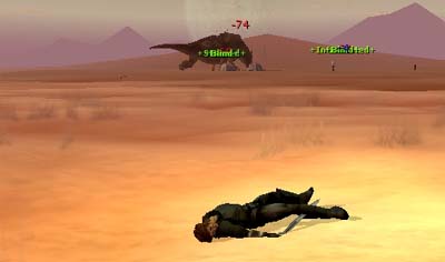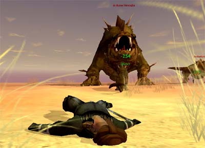 ソーズマンを極めるため、現住所のDantooineでPiketってのを狩ります 左のキリンみたいなのですが、これがかなり楽です Dantooineのmobは凶悪なのが多くてダメージ以外に毒やシビレ等、副次効果をもたらすのですがこいつはREDな1種類を除いてたいしたことありません ♀に特徴があって、巣を或いは子供を攻撃しない限り一家の♂を攻撃しても何もしてきません。それにEXPが平均で4000とウマーなのです。 ソロメインの親父ですが、時間あたり10万Expを稼げるので短期間でMasterになれるわけです。 SSのこのPiketはレアなBossでしたので記念撮影しました |