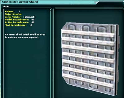 | 近接戦闘(Melee)は辛いです。遠距離やってた頃からは考えられないほど、気絶、死亡を繰り返してます。 MeleeDEFはある程度上がるのですが、遠距離攻撃(Ranged)の耐性がRiflemanやってた頃より遥かに低い値です。 なのでFacMissionの反乱軍虐めが出来なくなったですよ。 それに近接ですからmobから簡単にタゲられます。 で、結果、こりゃ、防具揃えないと戦えないな、と言う結論に達したです。 しかし、問題があるのですよ。防具は買ってもそのままでは着れません。 防具それぞれにEncumbranceってのがあります。負担ですな。HAMそれぞれに、部位毎にマイナスされるわけです。 種族毎にHAMの最大値が決まっていてその総数を自分で好きなように配分出来るのですが、フルセットの防具をそのままの状態ではどうしても値が足りなくて着ることができないシステムになってます。 そこで登場するのがSmugglerです。彼らのSlice技術で防具がHAMに与える負担値を軽減出来るのですよ。 で、買って来ました。 公式FORUMで有名なArmaniさんとDomonkさんの一品です。 色々、あってなかなかSliceして貰えなくて昨年末からお蔵入りさせてた一品でもありますが、Sliceして貰えたので公開するです |