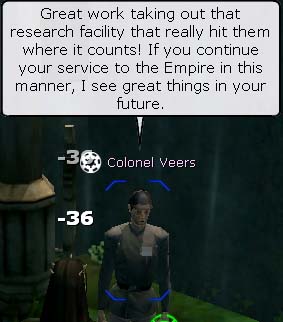 アルデラーンの嘆き第3部、だそうで、親父は1も2もやってませんでしたが Act1,2は全サーバーで反乱軍の勝利だったそうなので少しは貢献しようかとやってみたです JPNの情報によりNaboo Theed(-5430 4164)にいるImperial coodinatorに話を伺ったです 何度か話すると今度はInformation Officerを話しろと言われます |