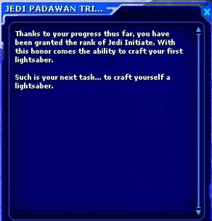 このPadawan Trial、全部で16のクエストがあります 同じクエストを3回失敗すると初めからやり直しだそうです ほとんどが簡単なお使いクエストです 戦闘があるのは6つほど 中に何々を20匹倒せってのがあってターゲットを探すのが面倒なクエストが3つあります |