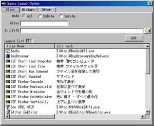 このランチャーの特徴はAlias名でアプリを登録し、テキストボックスからAlias名を入力してアプリを起動するのだが、それでは何も良い部分が無いわけだな。で、入力補完機能を装備したのだ。(最近ではオートコンプリートとか呼ばれているらしいのだが)