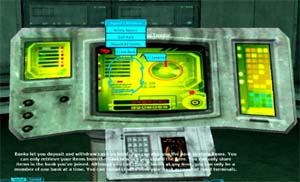 なんとかBanking Terminalに到着しました。使い方の勉強です。 各惑星に銀行があるのでまず、銀行と契約します。 金だけでなく、アイテムも預けることが出来ます。 注意としては惑星単位で銀行は運営されているので他の惑星に移住する場合は住んで居る惑星の銀行を解除して荷物をすべて移住先の惑星の銀行に預けることになるそうです。 しかし、ここで金を預けることは出来ましたが、荷物を預けることが出来ませんでした(解決策は後述) ここに到着する前に箱の開け方のお勉強がありまして、その中身も貰えます。 |