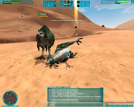 | その後ですが、、、、 Probotは2体ともDataPadに居るだけになってしまいました。 弱いし、崖や段差に引っかかって連れに行かないといけないし、命令出すとPowerDownとか言ってバッテリーを喰わせろって言うんですよ。 1回の出撃で3,4個のバッテリーを要求されるのでProbot使ったMissionは赤字です。 バッテリーはBazaarで@300Crほど、1Missionの請負価格は600Cr程度です。 それでバッテリー3個消費されると300Crは赤字になるわけです。 この状況を踏まえて、親父はCreatureHandlerになることにしたです。 そこいらに居るmobを捕まえて調教して狩りのお供にするのが流行りみたいですし、Skillも上がればかなり強いCreatureも連れて歩けるようになるそうです。 賞金稼ぎを目指していた親父ですが、武器の強化のために密輸業者、戦いを楽にするために猛獣使い、、、果たして、何になれるんでしょうか。 全部、賄うにはSkillPoint足りないです(バキ |