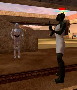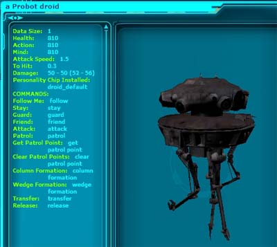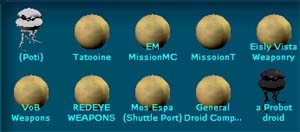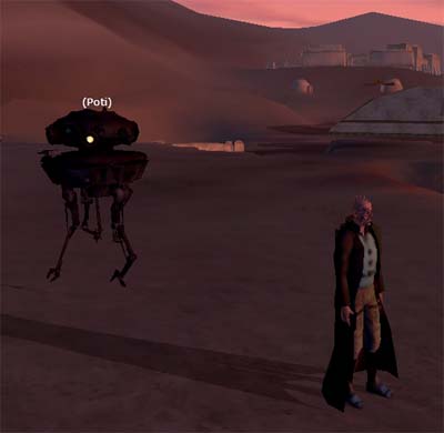 今回のターゲットはこのProbotです。 狩りに一緒に連れて行って、サポートしてくれる攻撃用Droidです。 映画では帝国軍の偵察用DroidってことでEpisodeIVからも登場してる有名な形のDroidです。 Patchが当たる以前は強かったそうですが、Nelf(弱体化)されてからかなり使えなくなったとは聴いていたのですが、このDroidは是非欲しいアイテムだったので無理矢理購入しました。 嬉しさのあまり速攻で、いつものBestineに戻りました。 しか〜し、、移動時の下着親父の祟りなのか、、、購入したDroidが何処にも見あたりません。 そう言えば、購入直後にtameしてInventoryからDataPadに移すとか、書き込みあったなあ(T_T) |