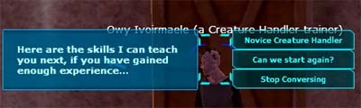 何度も5000Crを連呼されても、、、 で、無事にCH(Creature Handler)に、、初めての上級職ゲットです。 |