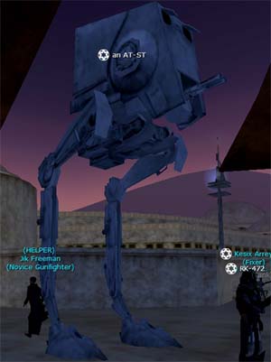 大規模Patch後、帝国軍側についた者はAT-STなんてのをペットに出来るようで羨ましい限りです。 かなり強いらしいですが、親父はまだどちらのサイドにも与してないので関係ないです。 しかし、これはホントは乗り物なんだよなぁ。 |