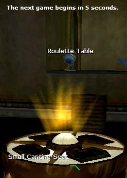 で、これがルーレットです。 見た目は良いのですが、、時間になるまでなら掛けられます。 通常のルールなので、数字でもよし、赤黒でもよし、偶数奇数も掛けられますが、すべてコマンドライン入力です。 結果はキャラクタで画面上に表示されて終わりです。 なんだかなぁ、です。こんなのなら導入しなくてもいいのでは? いろいろ不具合の多いSWGですが、何も文句も考えずに頑張ってますが、これはいただけないです。 一応、見なかったことにしました(バキ |