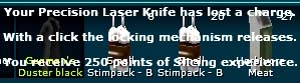 Laser Knifeが1個減ったけど、成功したです。 画面、見ずらいけど。 で、250PointゲットですがSliceの1段階目は5000Exp必要なので後、24個のLocked Containerを開けないと駄目なんです。 |