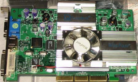 これ、今まで使ってたGeForce4 TI-4200x8です。 これでも冷却ファンが大きいしかなり重いって認識でした。 |