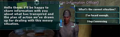 初めの将校と話すと今度はTactical Officerと話せと言われます 此奴はInformation Officerとは別の建物に居ました 親父は間違ってしまってかなり探しましたが(爆 |