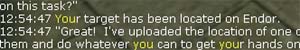 今回のクエストは他の星に行くことが前提になってるので吹き出し文字にはめ込み出来ずにログ画面に目標位置が表示されてるって手抜きモードになってるようです 心配だったのでDataPadを見てみるとちゃんと入ってました |