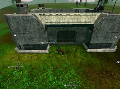近くば寄ると建物ですが敵はすべて建物の周りに居るだけで内部に潜入できません 言われていたように、今までのNPCと違って強いです 上級戦闘職を取っていないと辛いかもしれません 因みに親父のPETは死にそうになったです 親父はほとんど無傷でしたが(ゴメンねPET |