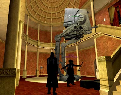 一方、GGは資金も尽きてきたのでOvertになってAT-STを出して原住民虐めしてました ※OvertにならないとAT-STが呼び出せないわけです DantooineでAT-STとGroupを組むと26,000CredのMissionが取れるのです AT-STをMissionTerminal付近に放置してるとRebが来て攻撃されたら困るので自宅内で呼び出してここに置いているわけです ま、無用な戦闘を避けてたってことです(+_☆)\Baki |