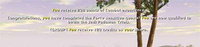 記念にSS撮ってみました 間違ってCompoの手袋してますが、これ付けてるとLightsaberの威力ぜんぜんありません PSGも同じで付けてると駄目です Padawan開始当初なのですべてのJediのSkillはNoviceすら持ってない状態です LS振っても決め技がないので大変です Jediを進めるにはLSでの攻撃で入る経験値だけが判定されますので通常戦闘を行ってもな〜んもなりません これからFSやっていた時よりももっとマゾいJedi Expとの戦いが始まるわけです どのくらいマゾいかと言うのは次回以降で報告します |